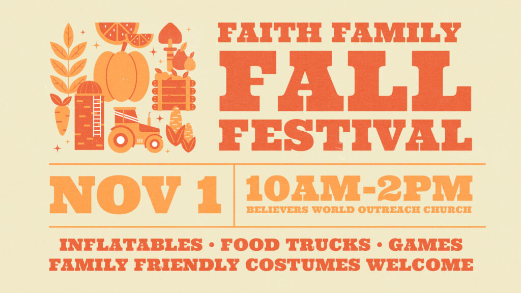 We are gathering our entire church community + all of their friends to celebrate God’s goodness through Jesus Christ and all things fall! This festival will include inflatable fun, carnival-style games, booths, food trucks, ice cream, and a great safe space to get to know people in the area.